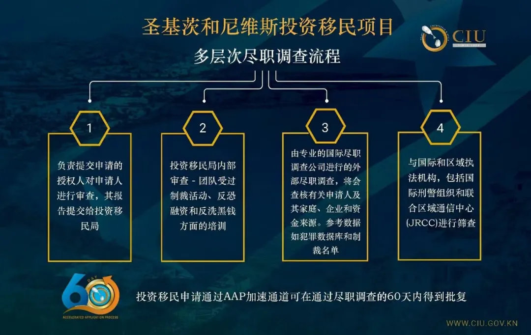 莱斯汗局长就圣基茨和尼维斯投资移民项目的四层尽职调查程序进行了详细解释: