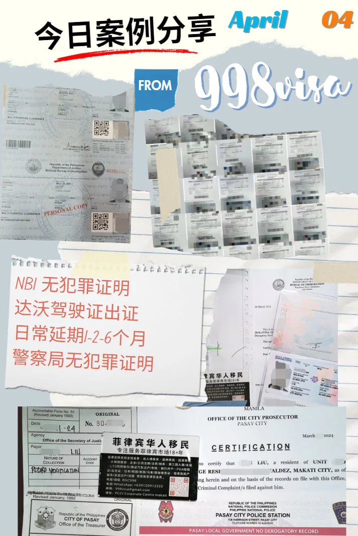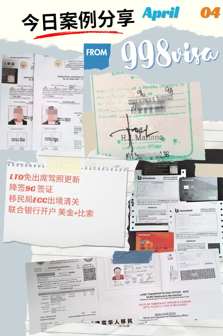 998 部分日常案例分享SRRV退休移民换卡更新旅游签证延期 退休移民新申请出签NBI 无犯罪证明达沃驾驶证出证警察局无犯罪证明LTO免出席驾照更新 降签9G 签证移民局ECC出境清关联合银行开户 美金+比索 MAKATI实体公司,政府正规授权。业务欢迎咨询我们 微信BGC998 电报 @BGC998温馨提示:本站更新内容速度比较慢 信息发布有一定时效性,所以最新资讯请联系我们获取了解,相关业务请咨询微信BGC998 电报@WOW888