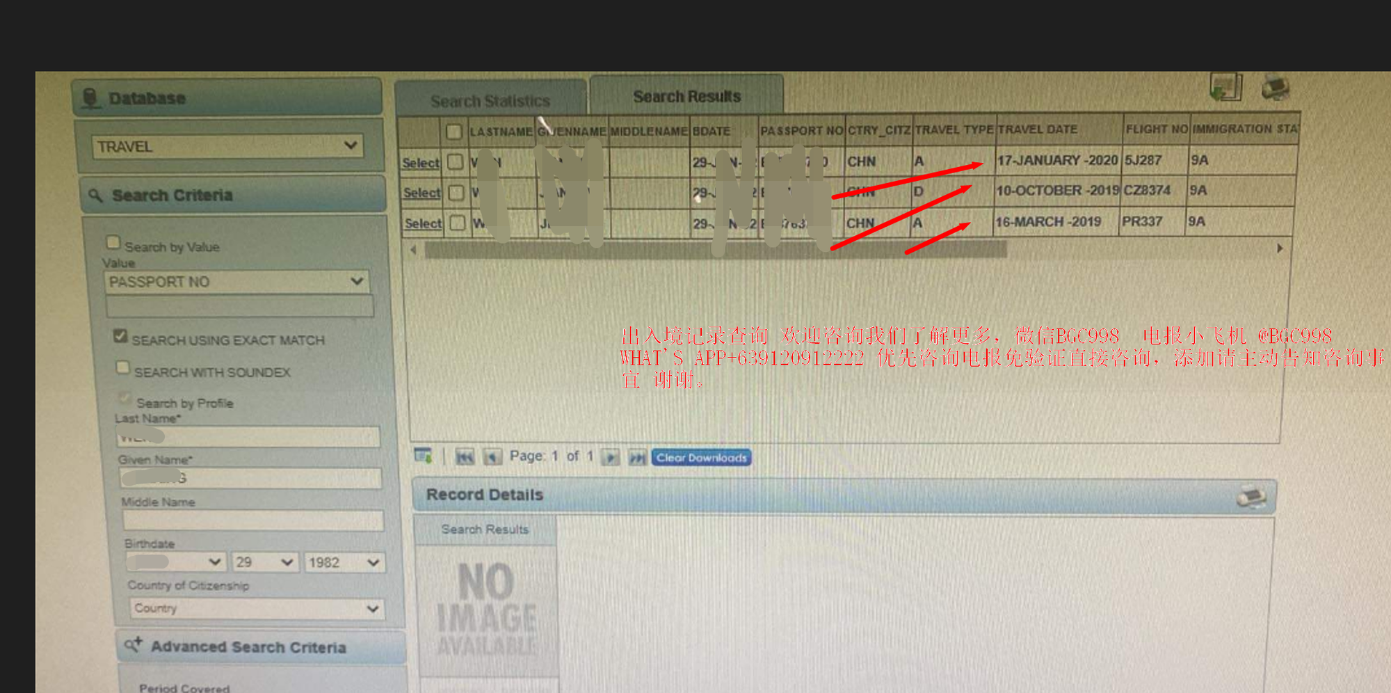 如果您想知道自己火鬃别人的出入境记录 请提供给我们 个人信息 出生年月底 护照号码 名字 出生地等 或者发护照首页查询比较精准, 欢迎咨询我们了解更多,微信BGC998 电报小飞机 @BGC998 WHAT'S APP+639120912222 优先咨询电报免验证直接咨询,添加请主动告知咨询事宜 谢谢。